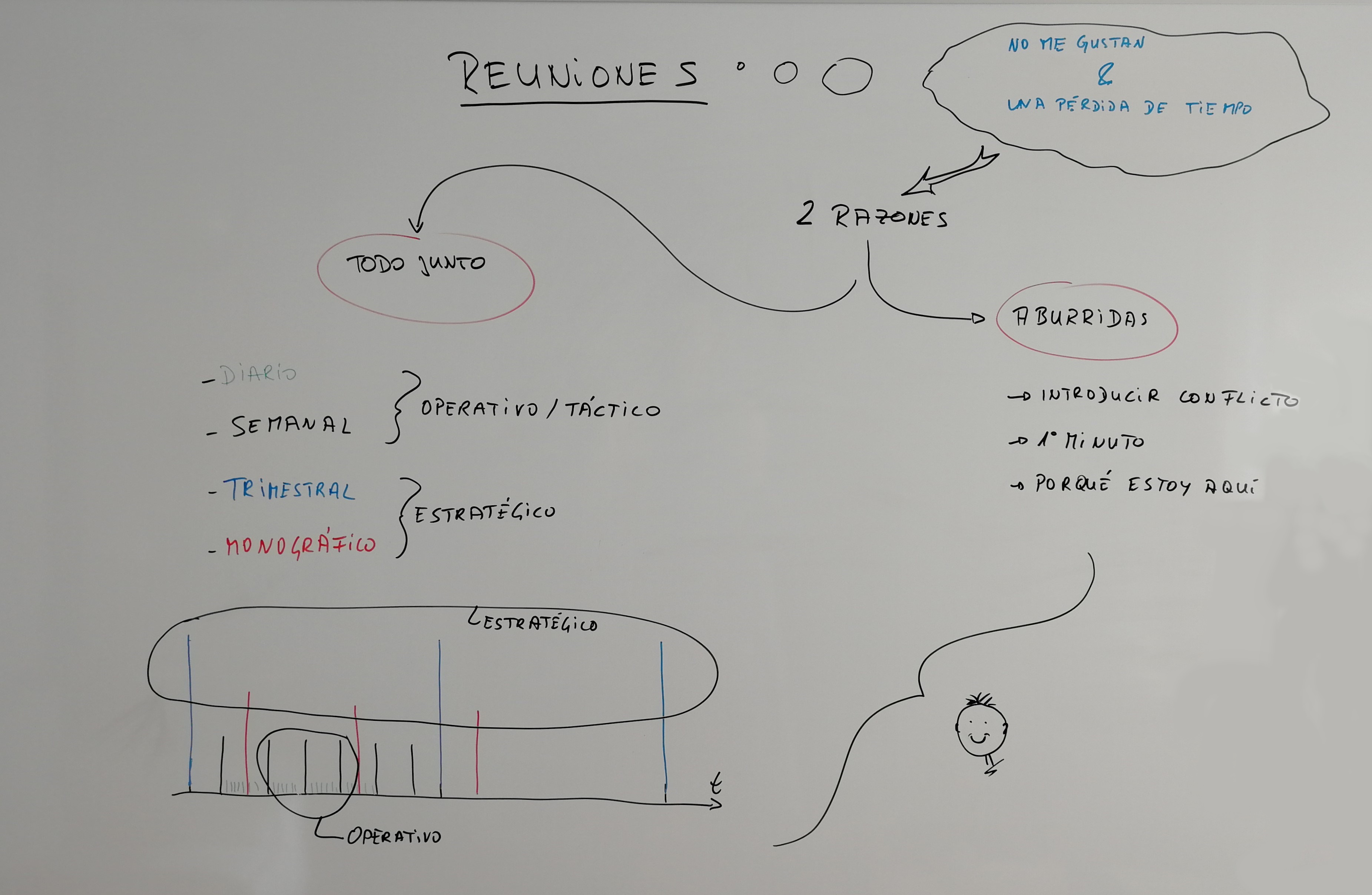 Pues entre estos dos temas, quitar realmente la parte aburrida e introducir diferentes tipos de reuniones que abordan diferentes temas, operativas y estratégicas. Haciendo esto, es cuando podemos alcanzar que las personas ya no digan que no les gustan las reuniones y al final realmente los consideramos efectivas, con ganas y incluso las evaluamos con un 8, un 9 o un 10.